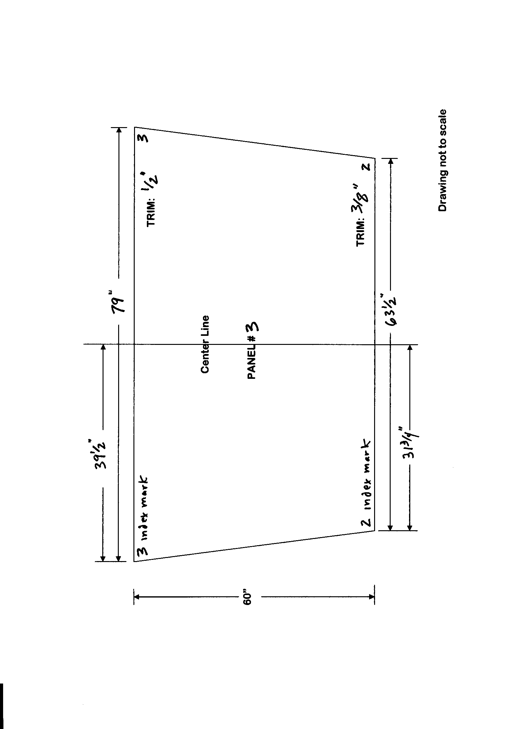 Below are links to drawings for each of the 13 panels. (The panels are numbered from 1 to 13 going from bottom to top.) Each set of panels is sewn together to make a "gore" that runs the entire height of the envelope.